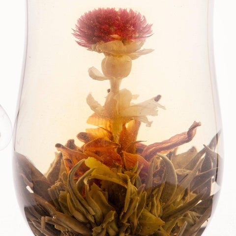 Get ready to be blown away by the ultimate tea experience that's taking Instagram by storm! Our Flower Blossom tea doesn't just taste amazing, it's a work of art that blooms right before your eyes. As the hot water hits the tea, watch as the flower bursts open, creating a mesmerizing display that's just as impressive as it is delicious. Made with a blend of natural loose-leaf white tea and richly scented dried flowers like jasmine, chrysanthemum, amaranth, Osmanthus, and lily, this tea is not only a treat for your taste buds but a feast for your eyes! Don't just drink tea, indulge in a show-stopping experience with every sip.